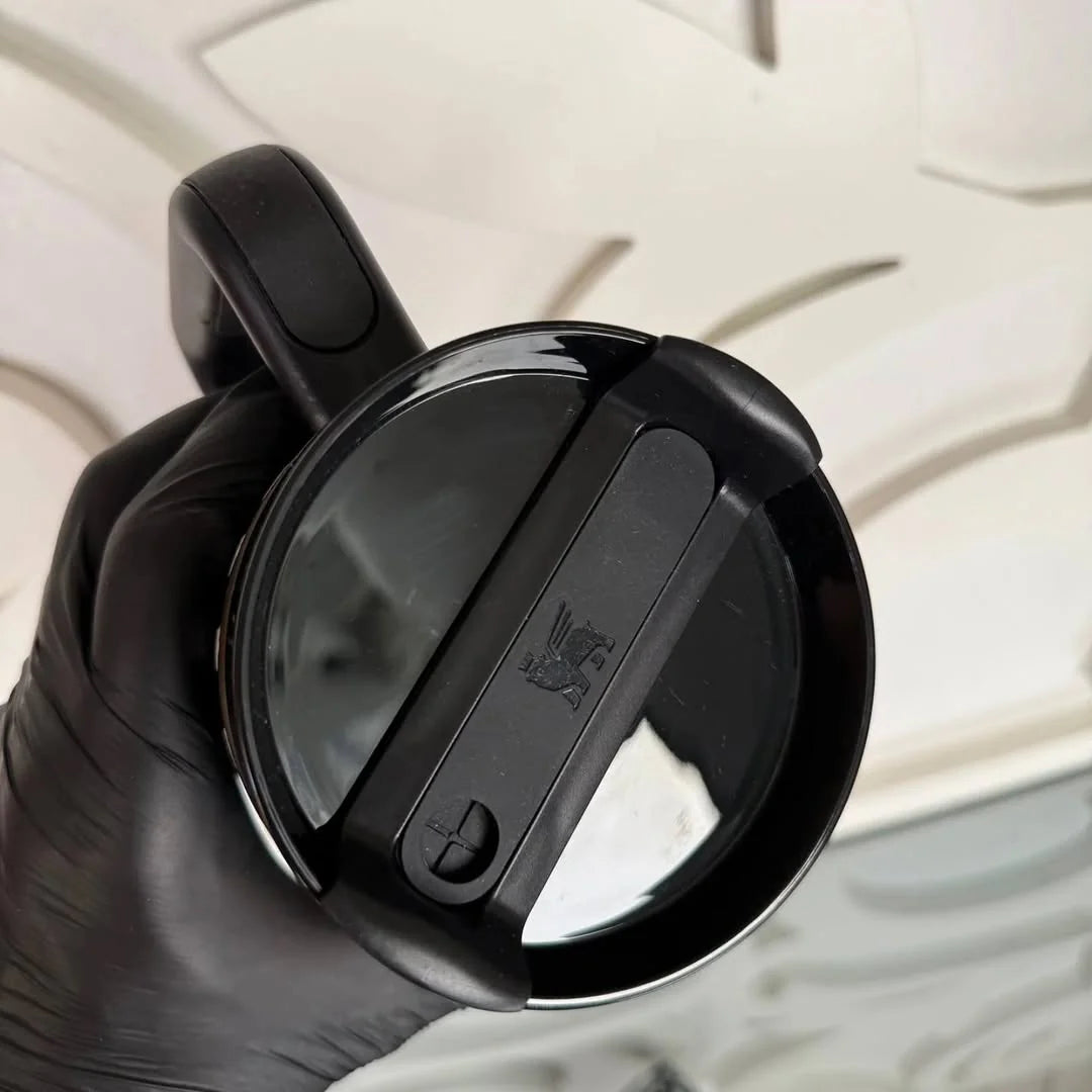 The tumbler has a 40oz ~ 1200ml capacity, perfect for staying hydrated all day without frequent refills. Its sturdy handle and car cup-holder friendly design make it easy to carry to work, school, gym, or travel.